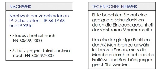 Als weitere positive Eigenschaft weist die AK- Membran hervorragende Spritzschutzeigenschaften auf.