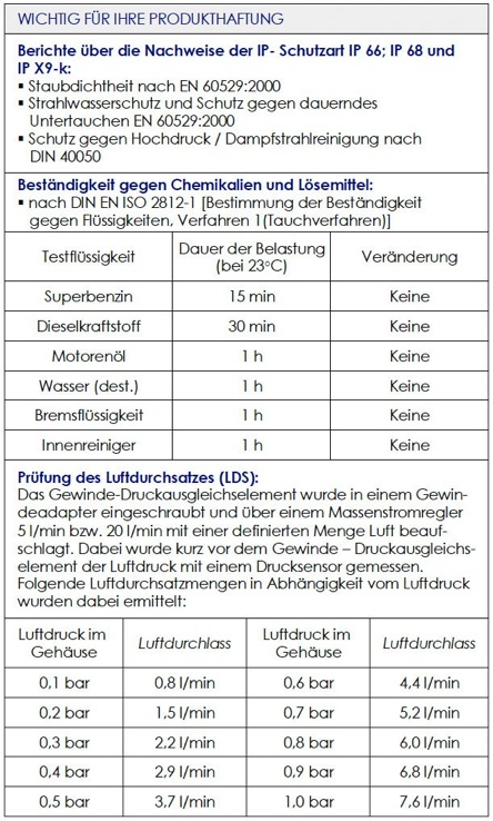 Hohe Luftdurchflussraten damit optimale Anpassung vom Innen- an den Umgebungsdruck.