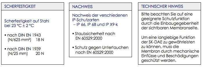 Aufgrund der modifizierten Bauweise des Klebebandes sind die SK-DAE weitgehend: alterungs-, witterungs- und temperaturbeständig.